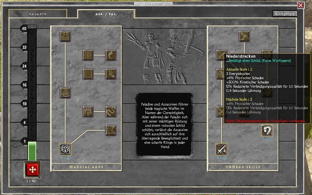 Ist schon ein bisschen schade daß ausgerechnet die Standard-Skills (Stabangriff und Pause) so "kompliziert" sind. Das macht den Einstieg wohl nicht leichter... zumal D2I offenbar eh eine Mod ist, deren wirkliche Qualitäten sich erst nach längrem spielen zeigen. Aber naja.